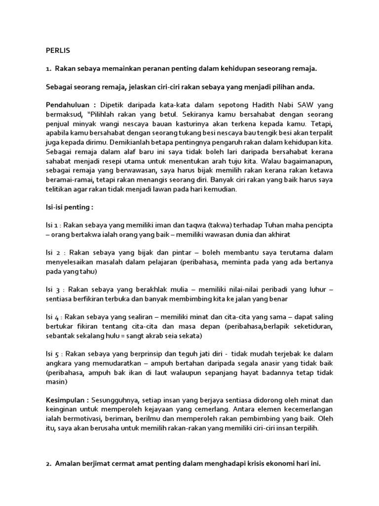 AR Saban hari kita dapat membaca berita tentang kemalangan yang bukan sahaja mengakibatkan kecederaan malahan kehilangan nyawa. Karangan Contoh 10 - Kepentingan Perpaduan Kaum di. Ibu bapa menjadi suri teladan.