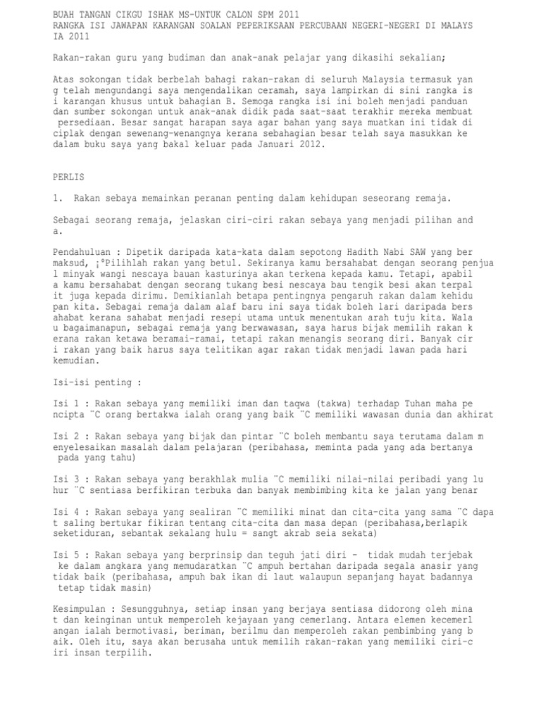 Up to 24 cash back Contoh Karangan A SPM DAN PT3. Untuk melihat contoh-contoh hasil seni kraftangan KLIK SINI. Saya nak contoh.
