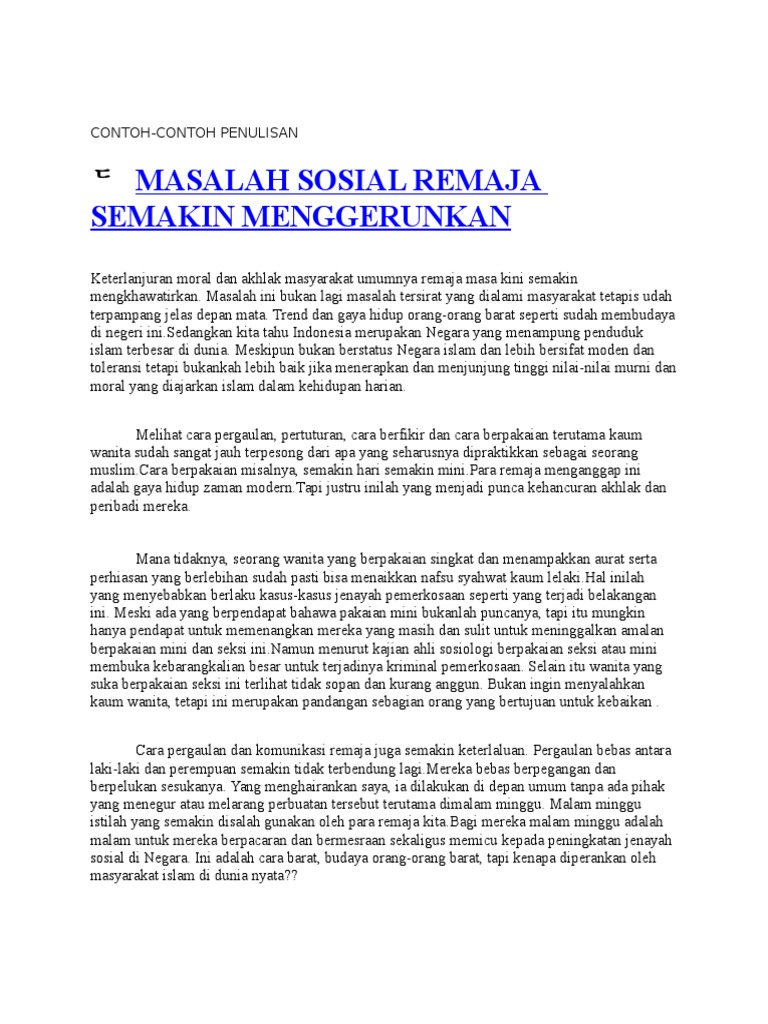 Masyarakat cakna dengan kebejatan akhlak remaja. PW Memang tidak dapat dinafikan AR kes kemalangan jalan raya di negara kita semakin meningkat saban tahun. Karangan Contoh 13 - Cara-cara Menceriakan Kawasa.